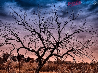 Puzzle Zachód, Drzewo, Łąka, Slońca