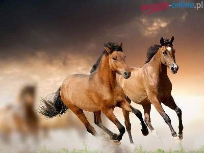 Puzzle Zachód, Konie, Bieg, Słońca
