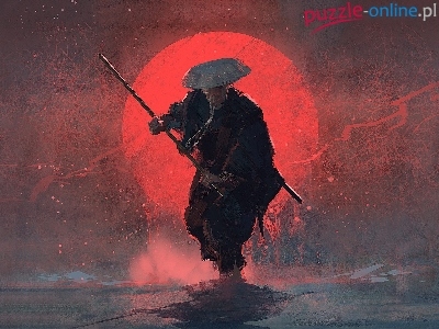 Samuraj, Zachód słońca, Paintography, Digital art, Kij bo