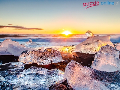 Puzzle Zachód słońca, Morze, Bryły lodu