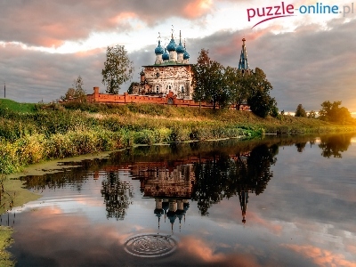 Cerkiew, Zachód słońca, Rosja, Dunilovo, Rzeka Teza