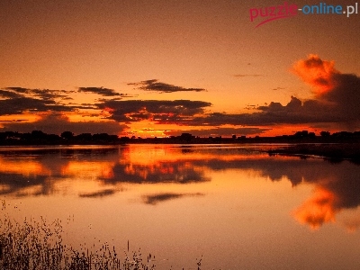 Zachód, Odbicie, Jezioro, Chmury, Słońca