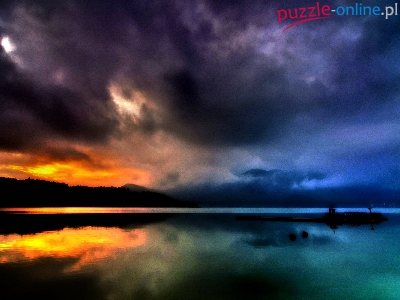 Puzzle Zachód, Kolorowe, Chmury, Słońca