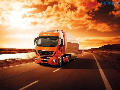 Puzzle Zachód, Ciężarówka, Droga, Słońca