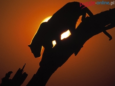Puzzle Zachód, Puma, Drzewo, Słońca