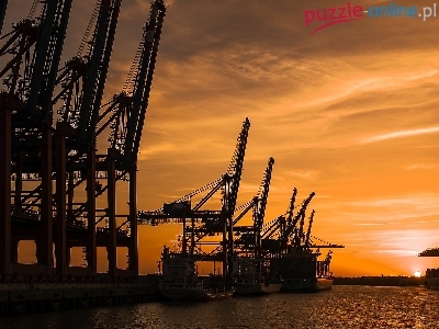 Puzzle Zachód, Port, Dźwigi, Słońca
