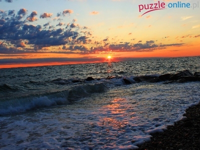 Puzzle Zachód, Morze, Fale, Słońca