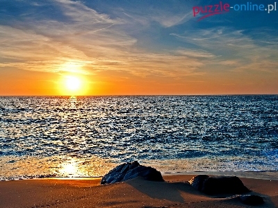 Zachód, Plaża, Chmury, Morze, Głazy, Słońca