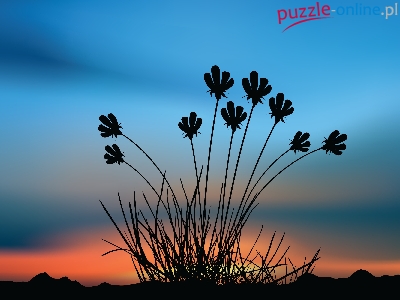 Puzzle Zachód, Kwiaty, Góry, Słońca