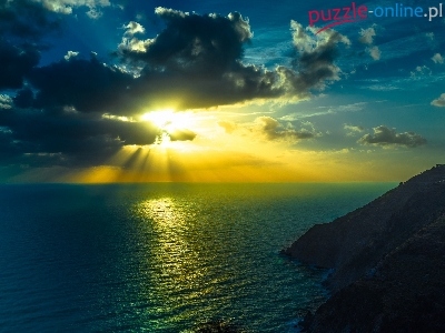 Góry, Zachód, Przebijające Światło, Chmury, Słońca, Morze