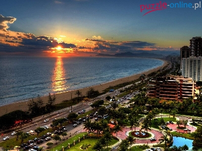 Zachód, Chmury, Wybrzeże, Hotele, Słońca