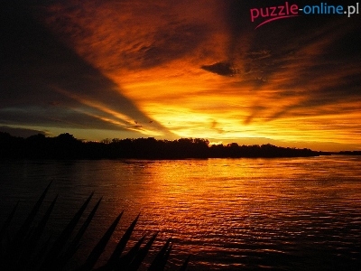 Puzzle Zachód, Chmury, Jezioro, Słońca