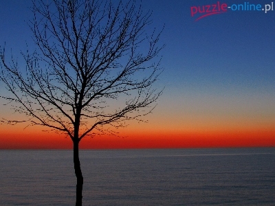 Puzzle Zachód, Drzewo, Jezioro, Niebo
