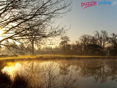 Puzzle Zachód Słońca, Jezioro, Drzewa