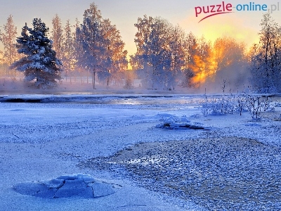 Puzzle Zachód, Zamarznięte, Jezioro, Słońca