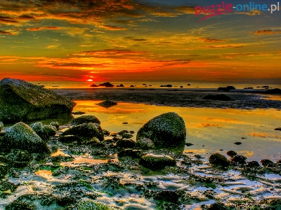 Puzzle Zachód, Morze, Kamienie, Słońca