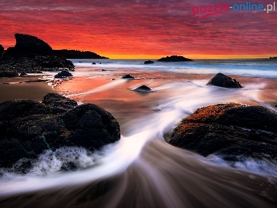 Puzzle Zachód, Morze, Kamienie, Słońca