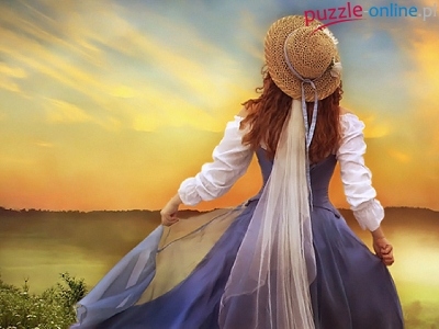 Puzzle Zachód, Dziewczyna, Kapelusz, Słońca