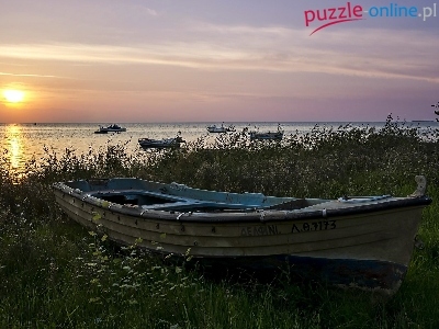 Puzzle Zachód słońca, Łódki, Kutry, Morze