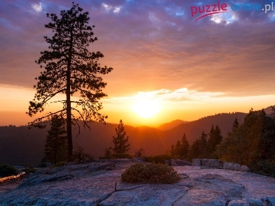 Puzzle Zachód, Góry, Lasy, Słońca
