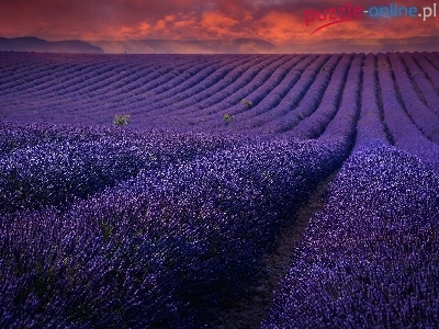 Puzzle Zachod, Pole, Lawendy, Slonca