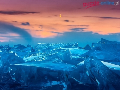 Puzzle Zachód, Góry, Lodowe, Słońca
