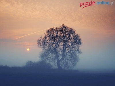 Puzzle Zachód, Drzewo, Mgła, Słońca