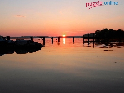 Puzzle Zachód, Jezioro, Molo, Słońca