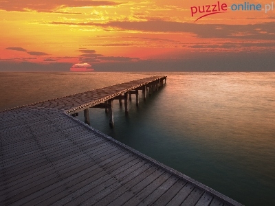 Puzzle Zachód, Morze, Molo, Słońca