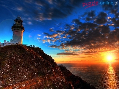 Puzzle Zachód Słońca, Latarnia morska, Wzgórze