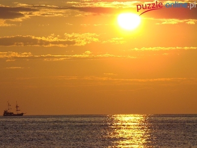 Puzzle Zachód, Żaglowiec, Morze, Słońca