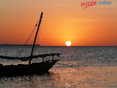 Puzzle Żaglówka, Morze, Zachód słońca