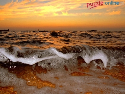 Puzzle Zachód, Fale, Morze, Słońca