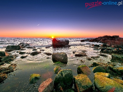 Puzzle Zachód, Kamienie, Morze, Słońca