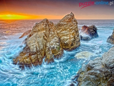 Puzzle Zachód, Skały, Morze, Słońca