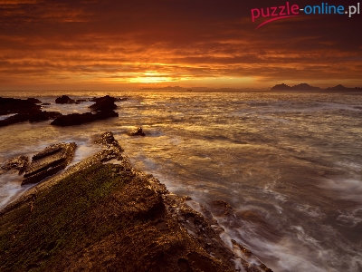 Puzzle Zachód, Skały, Morze, Słońca