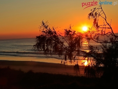 Puzzle Zachód Słońca, Morze, Gałęzie