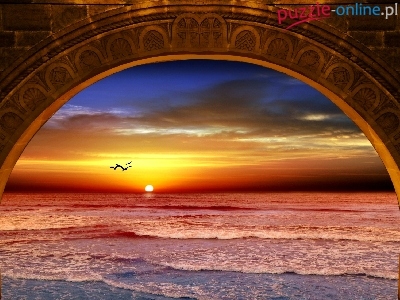 Zachód, Ptaki, Łuk, Morze, Słońca
