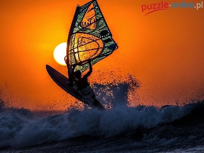 Puzzle Zachód, Windsurfing, Morze, Słońca