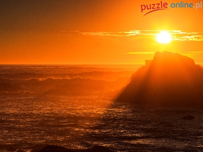 Zachód, Skała, Wzburzone, Morze, Słońca