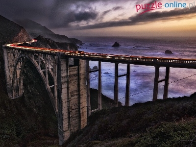 Puzzle Zachód, Morze, Most, Słońca