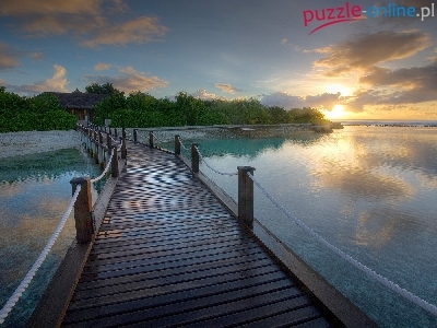 Puzzle Zachód, Wybrzeże, Most, Słońca