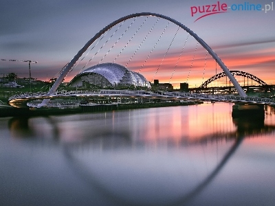 Puzzle Zachód, Rzeka, Mosty, Słońca