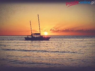 Puzzle Zachód, Morze, Łódz, Słońca