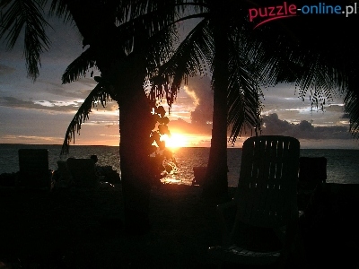 Puzzle Zachód Słońca, Morze, Palmy, Malediwy
