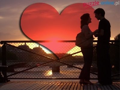 Puzzle Zachód, Serce, Para, Słońca