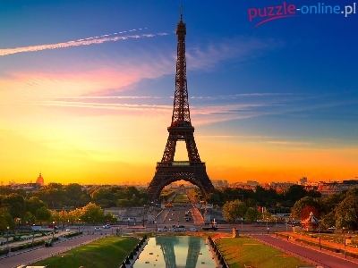 Zachód, Wieża Eiffla, Francja, Paryż, Słońca