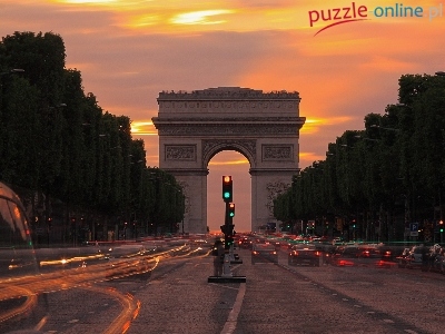 Puzzle Zachód, Łuk Triumfalny, Paryż, Słońca