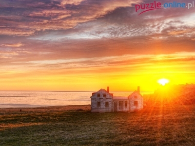 Puzzle Zachód, Domek, Pastwisko, Słońca