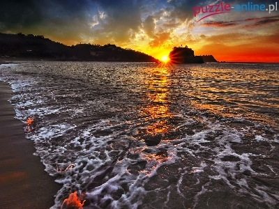 Puzzle Zachód, Morze, Plaża, Słońca